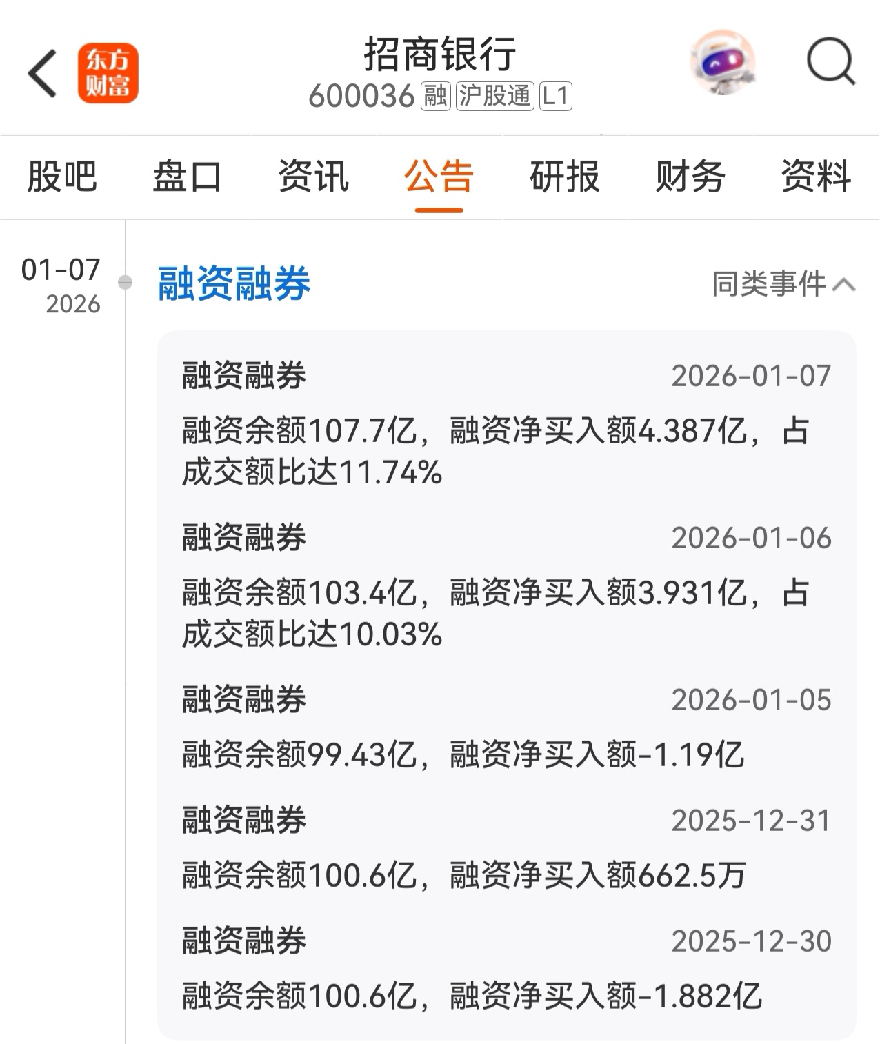 $招商银行(SH600036)$ 1月6日招行的融资客净买入3.931亿元,占当日招行成交额的10%,1月7日招行的融资客又买入4.387亿,占当日招行成交额的11.74%。