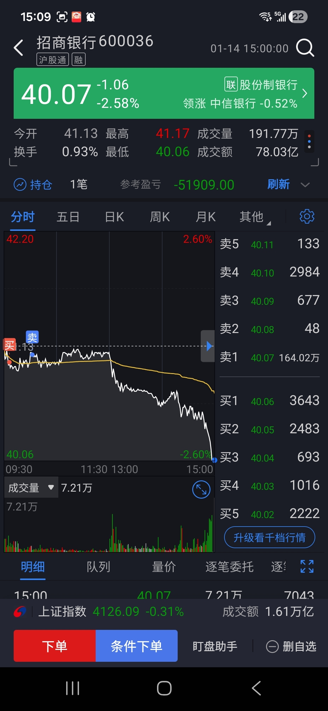 $招商银行(SH600036)$ 大哥不带这样玩的?昨天刚重仓,早上还在兮兮做个t,下午你就拉一坨大的???????