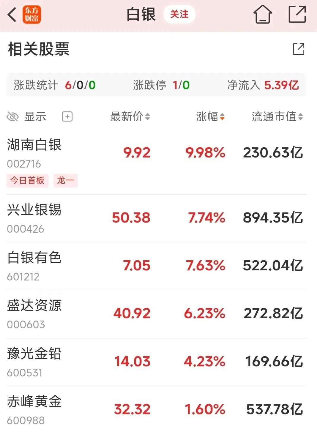 A股的白银板块也跟着走强,湖南白银涨停,兴业银锡、白银有色、盛达资源、豫光金铅、赤峰黄金也明显跟涨。