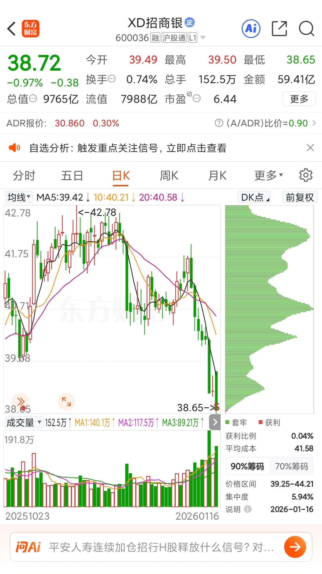 $XD招商银(SH600036)$ 价值投资就是这样,兄弟们不要慌,拿住20年。分红的钱再买进去,复利创造奇迹。#复盘记录# #收盘点评#