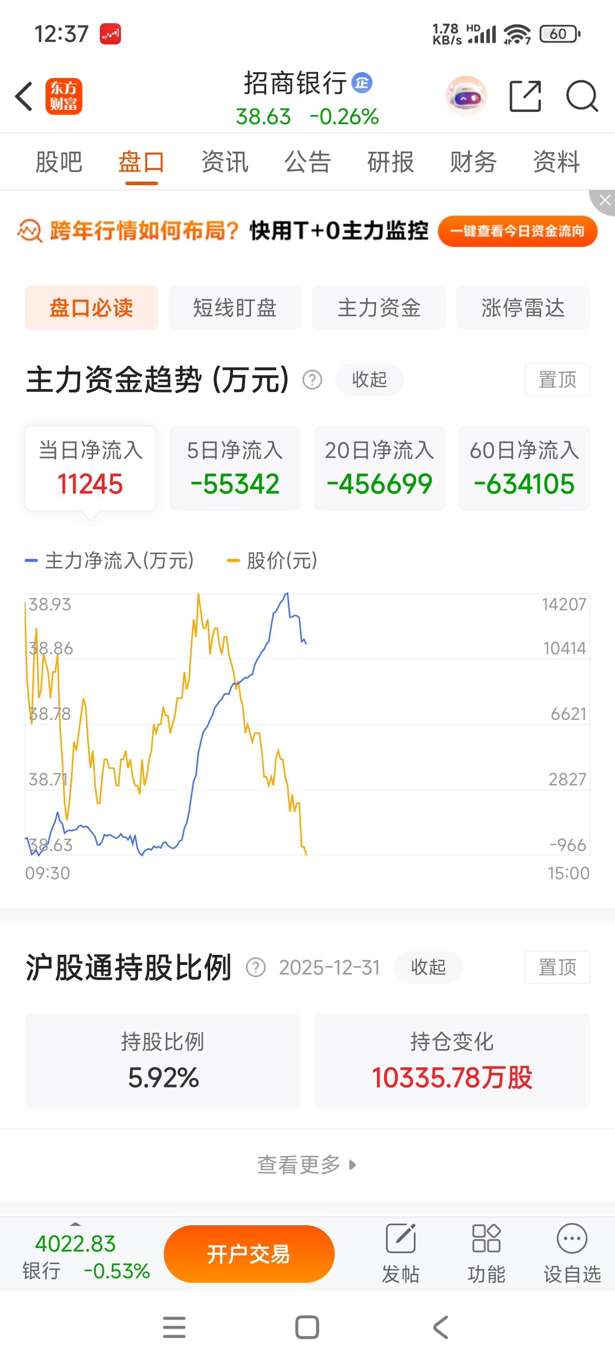 $招商银行(SH600036)$ 主力进来了吗?怎么没感觉啊