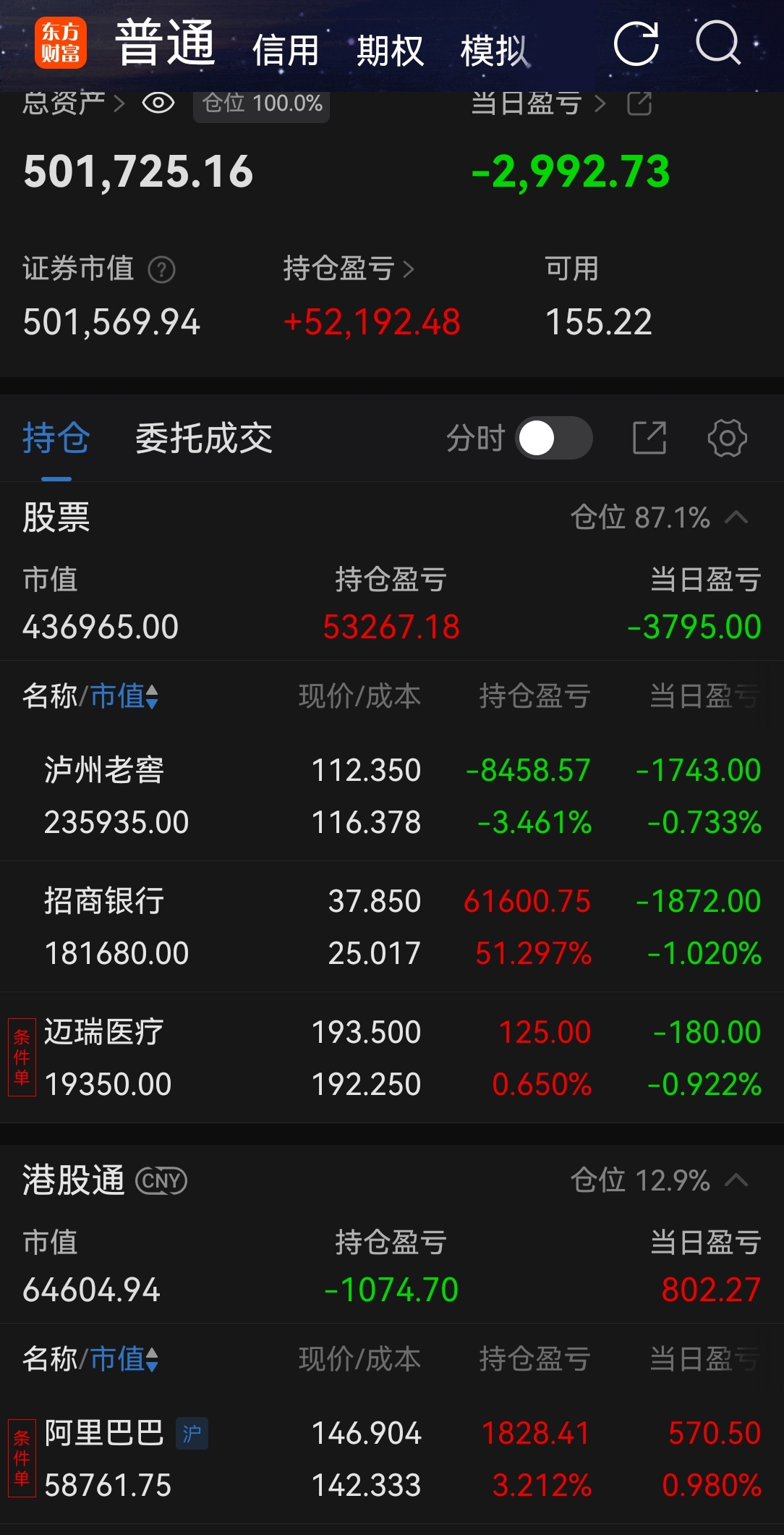 今天浮亏三千元,无操作。上午富贵了一把,收盘变浮亏。主要是阿里涨。