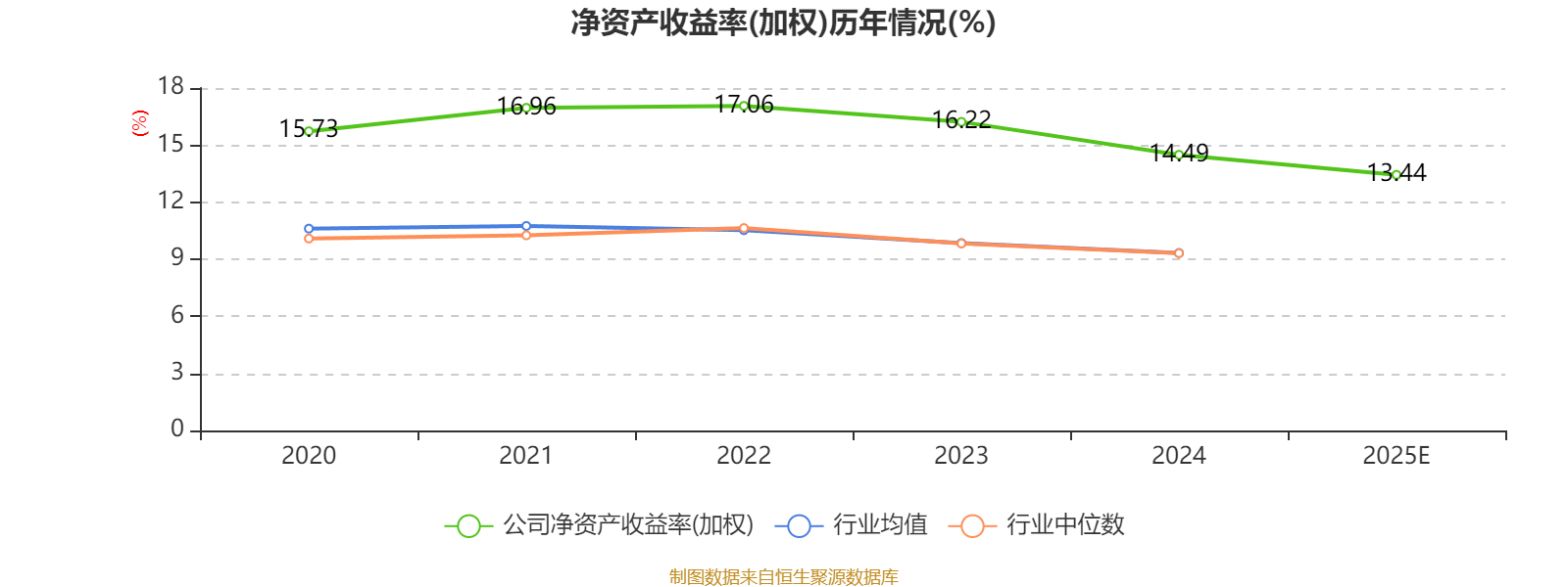 数据显示,2025年公司加权平均净资产收益率为13.44%,较上年同期下降1.05个百分点。