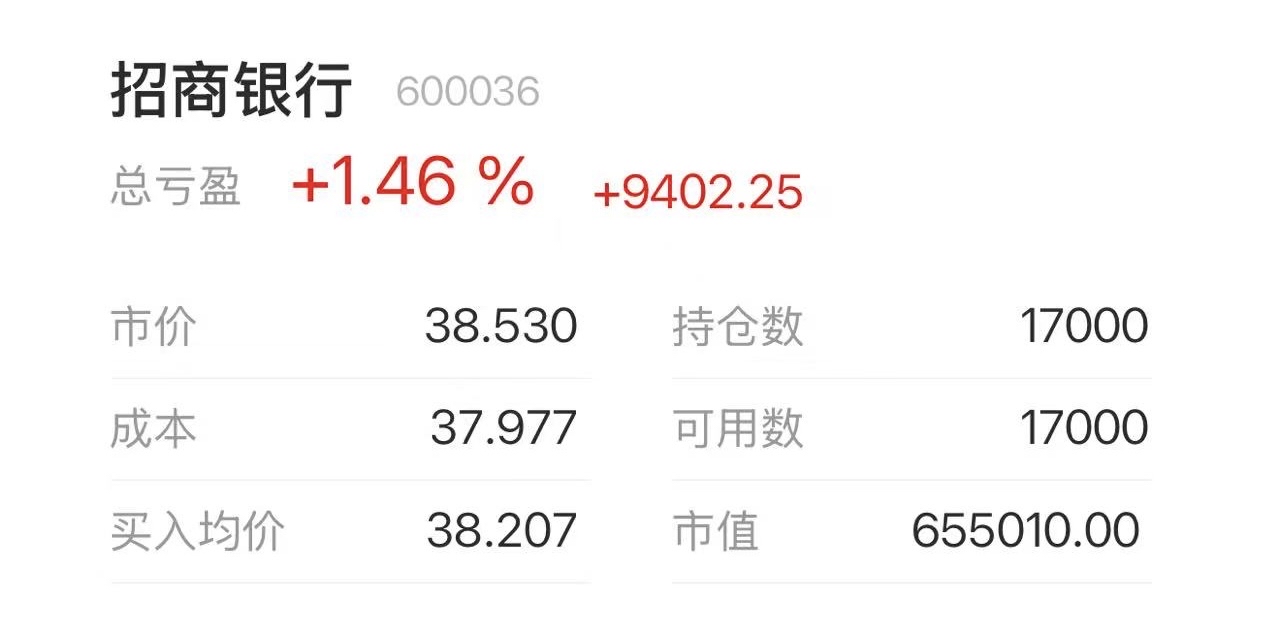 $招商银行(SH600036)$ 本准备定存缓慢增持,这个价格,一月份就把全年额度打光了