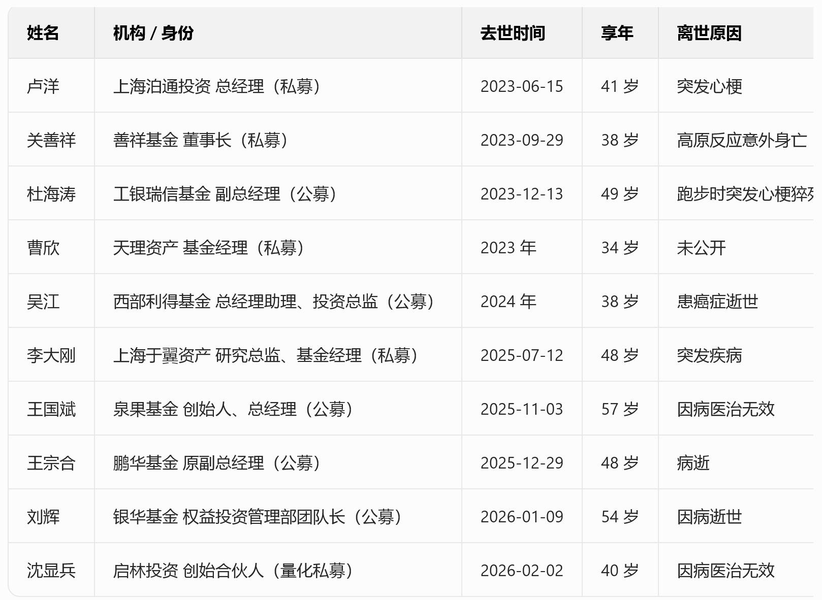 投资,总是充满着遗憾。 买早了,被套心慌;买晚了,成本变高;买少了,赚得不够爽;买多了,风险不可控。卖早了,踏空后拍断大腿;卖晚了,利润回撤,懊恼不已。 我们看到的是“现在”和“历史”,却要为“未来”进行下注,未来是很难预测的,所以注定有判断错的时候。我们的资金是有限的,不可能所有看好的标的都重仓;精力也是有限的,不可能看完所有的财报和行业信息。 哪怕是同一个策略,运用的时间不同,效果可能大不一样。 总之,只要你不是在绝对最低点买入全部身家,并在绝对最高点全部卖出,理论上你都有“遗憾”的空间。 投资是门遗憾的艺术,它是人性的一面镜子。在这个市场上,我们最终交易的不是K线,而是我们自己的贪婪与恐惧。接受遗憾,是走向成熟的起点。 我们不可能抓住所有机会,也不必抓住所有机会。投资是一个在不确定世界中,通过一系列不完美决策,尽量接近自己人生目标的过程。 有些人听别人嘲讽几句,你这卖早了啊,就受不了了。其实,作为散户,不要为了证明自己而易。 个人投资者的一大优势,就是不用去对比,不用关注排名,不用怕跑输,不用向客户解释为何买,为何没涨为何减仓。没有机会时,就耐心等候,不眼红别人赚钱;机会出现时,就大胆进攻,不瞻前顾后。 想明白了这些,就不必在乎别人怎么说。孔子所说的“六十而耳顺”,意思是他60岁前后周游列国,一路颠簸,不顺心,但很虚心,楚狂接舆、长沮、桀溺、荷蓧丈人,沿途碰见的怪人,冷嘲热讽,什么难听话,他都听得进去,就连郑人说他“累累若丧家之狗”,他也点头称是。因为他年纪大了,阅世既久,毁誉置之度外,爱怎么着怎么着,无所谓,没什么脸红,没什么不好意思,这就是所谓的“耳顺”。 对投资这行来说,接受遗憾,别较劲,不光是为了长期业绩,更是为了个人的健康。 这两年我听到太多知名投资人离世的消息了,我问AI,它说最近三年总共有10位知名公募 / 私募基金经理及投资人离世,年龄最小的34岁,最大的57岁,平均享年44.7岁,都不算长寿。 这一行压力很大,要学会与自己和解。钱是赚不够的,操作也不可能尽善尽美。除了投资的目标外,我们也应该把健康和生活摆在更重要的位置。实际上,若一个投资者不能做到长寿,他就不能算是一位伟大的投资者。因为复利需要时间来发酵,年纪不到,哪怕能力再高,赚到的资产也是有限的。如果你持续投资到90岁,你就是大师。 这些话也是对我自己说的,因为我一直都太忙了。 马上就要过年了,我将逐步进入放松模式,带孩子出去旅游,去与好友聚聚,有些投资将等年后再去做,有些研究要慢慢来,节奏会放慢,文章也会相对随性一些。 今天就聊到这里,晚安~ 作者:布衣书生 自媒体:复利人生