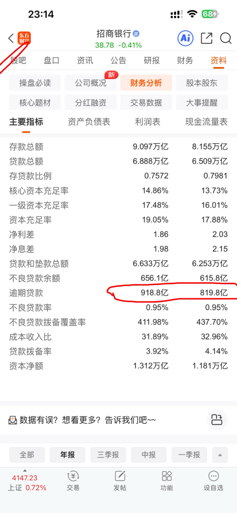 $招商银行(SH600036)$ 逾期增加了100亿