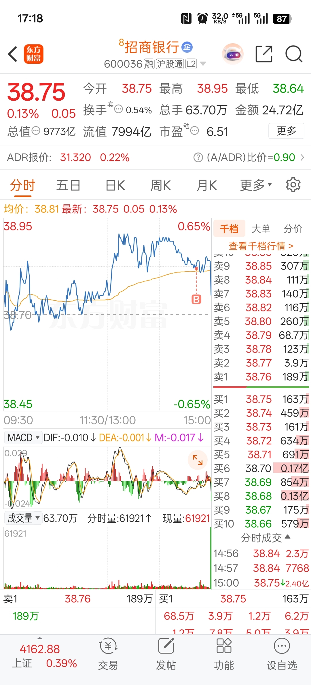 $招商银行(SH600036)$ #实盘记录#