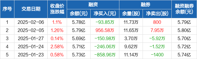 歌华有线:融资净偿还93.85万元,融资余额5.78亿元(02-06)