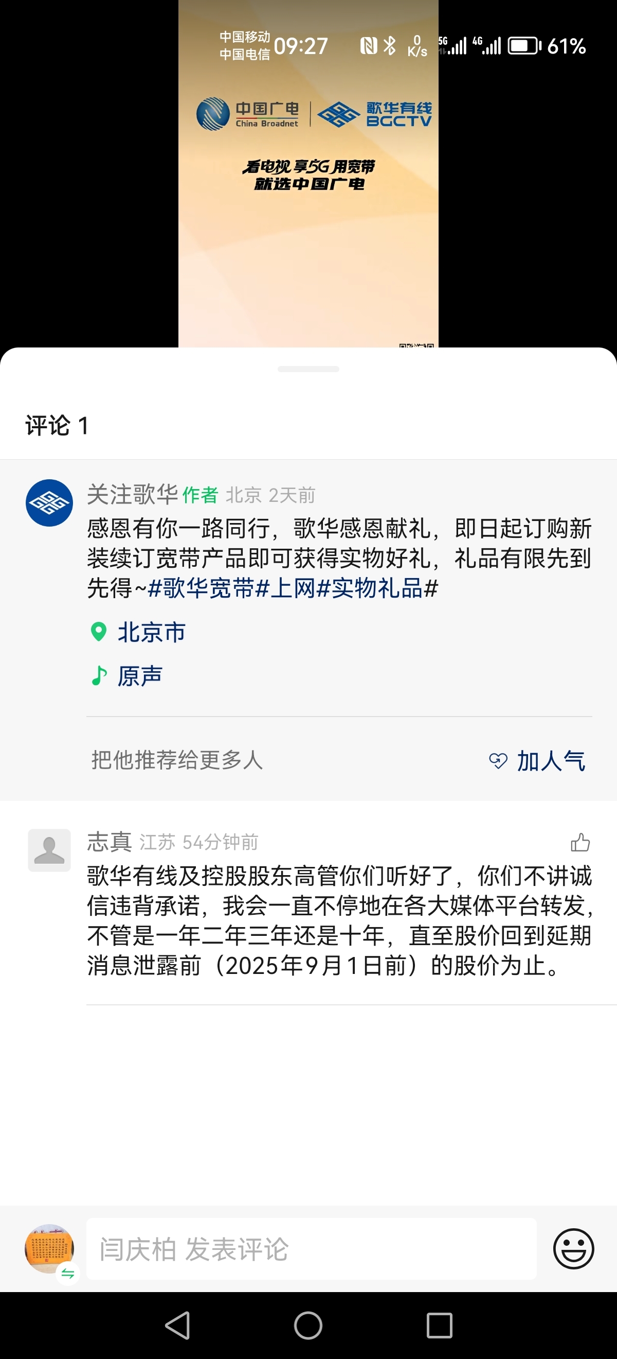 $歌华有线(SH600037)$