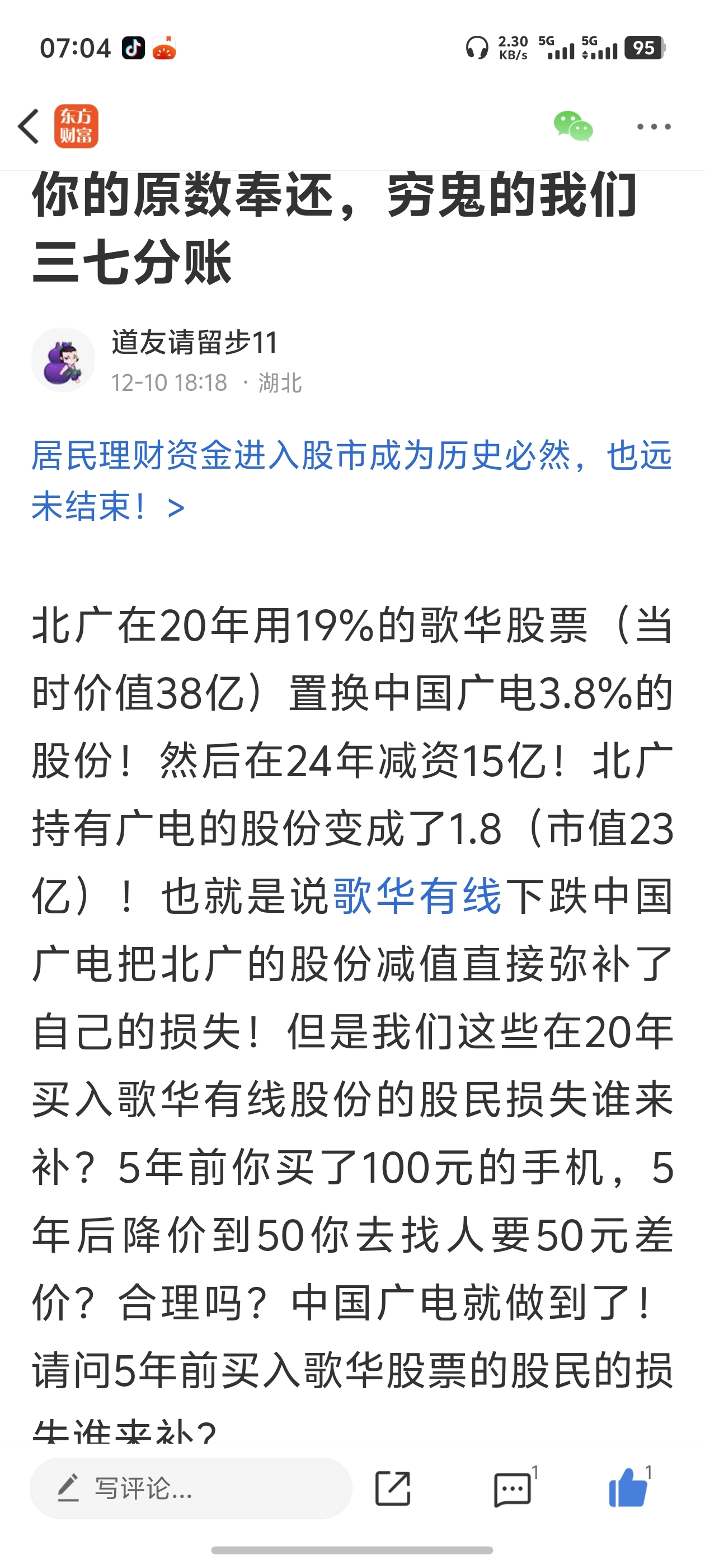 $歌华有线(SH600037)$ 你们都觉得这是正常的合理合规的吗?