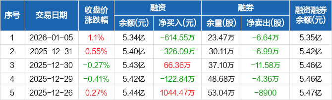 歌华有线:融资净偿还614.55万元,融资余额5.34亿元(01-05)