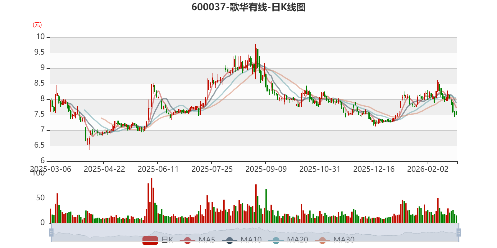中证智能财讯歌华有线(600037)3月5日晚间披露2025年业绩快报,公司实现营业收入22.2亿元,同比下降4.08%;归母净利润3431.31万元,同比扭亏;扣非净利润亏损6822.61万元,上年同期亏损9917.34万元;基本每股收益0.0247元,加权平均净资产收益率为0.27%。以3月5日收盘价计算,歌华有线目前市盈率(TTM)约为306.24倍,市净率(LF)约0.83倍,市销率(TTM)约4.91倍。