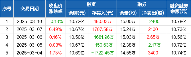 中直股份:融资净买入490.03万元,融资余额10.72亿元(03-10)