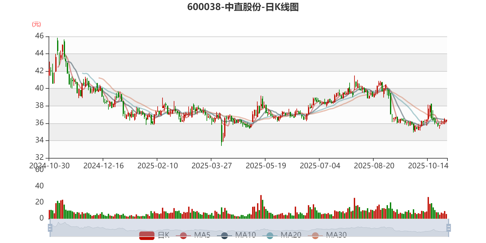 中证智能财讯中直股份(600038)10月30日披露2025年第三季度报告。前三季度公司实现营业总收入150.47亿元,同比下降13.02%;归母净利润3.73亿元,同比增长4.32%;扣非净利润2.83亿元,同比下降12.50%;经营活动产生的现金流量净额为-90.24亿元,上年同期为-114.53亿元;报告期内,中直股份基本每股收益为0.4546元,加权平均净资产收益率为2.40%。
