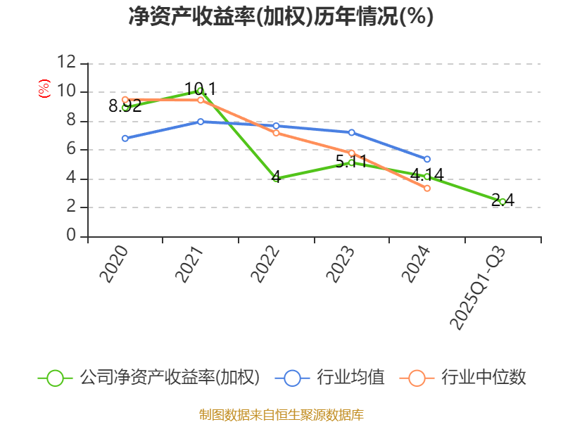 盈利能力方面, 2025年前三季度公司加权平均净资产收益率为2.4%,同比下降0.39个百分点。公司2025年前三季度投入资本回报率为1.5%,较上年同期下降0.23个百分点。