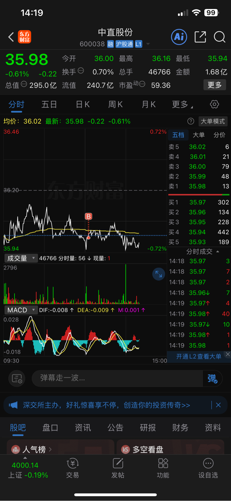 $中直股份(SH600038)$ 要是能跌破30就好了....