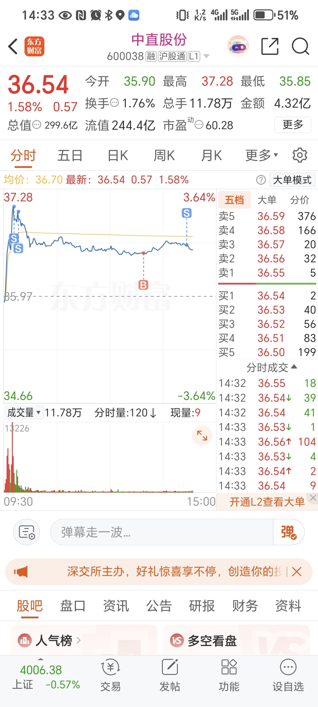$中直股份(SH600038)$ 靠,一碗牛肉面有了