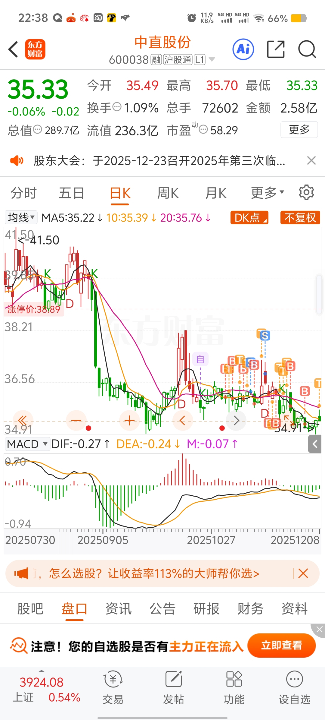 $中直股份(SH600038)$ 玩不过主力,这k线没法玩。买少了,T来T去,不够手续费。买多了,容易自挂东南枝。
