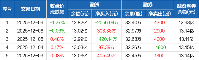 中直股份:融资净偿还2056.04万元,融资余额12.82亿元(12-09)