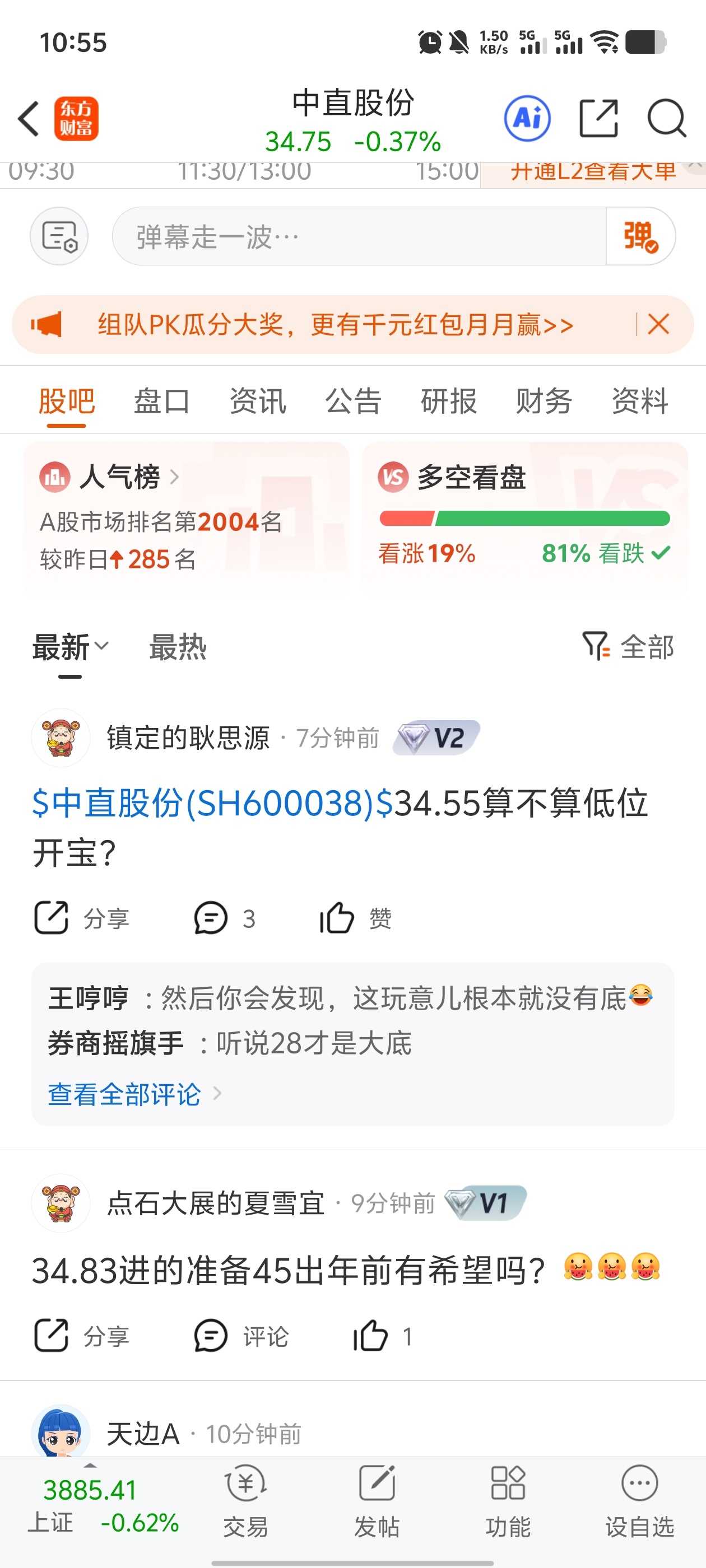 $中直股份(SH600038)$ 哈哈,大家都认清现实了呀