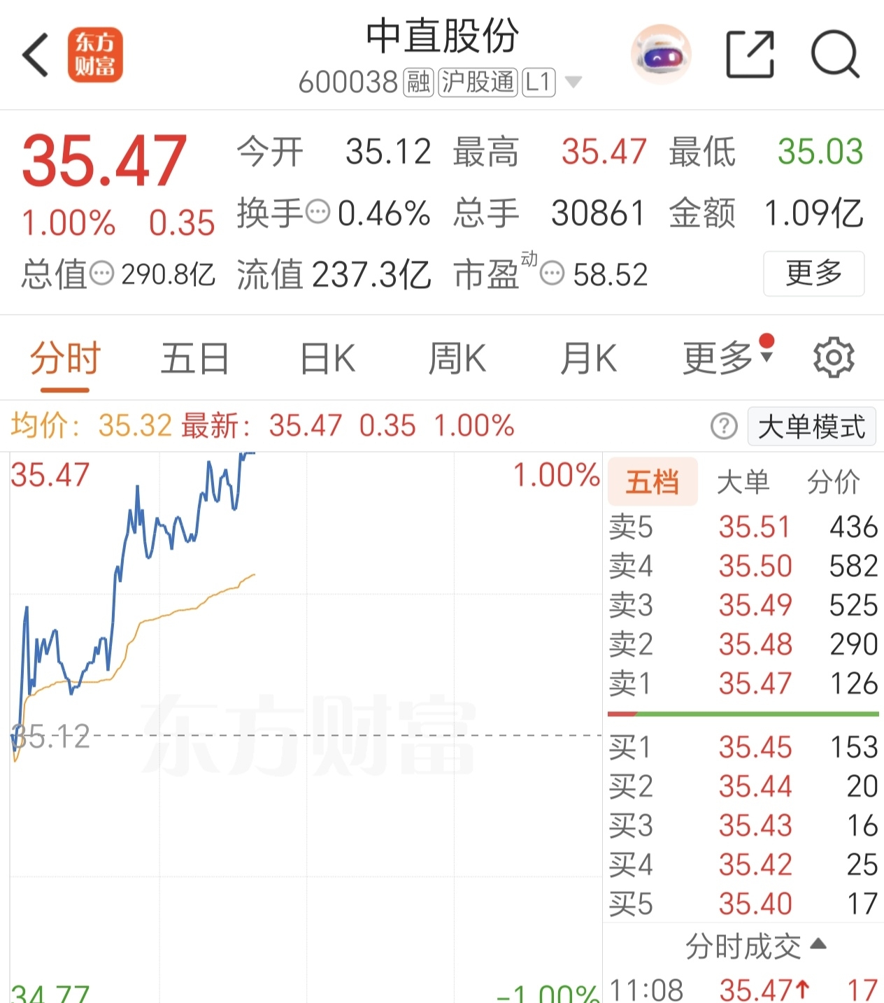 $中直股份(SH600038)$ 乍一看,以为涨停了。