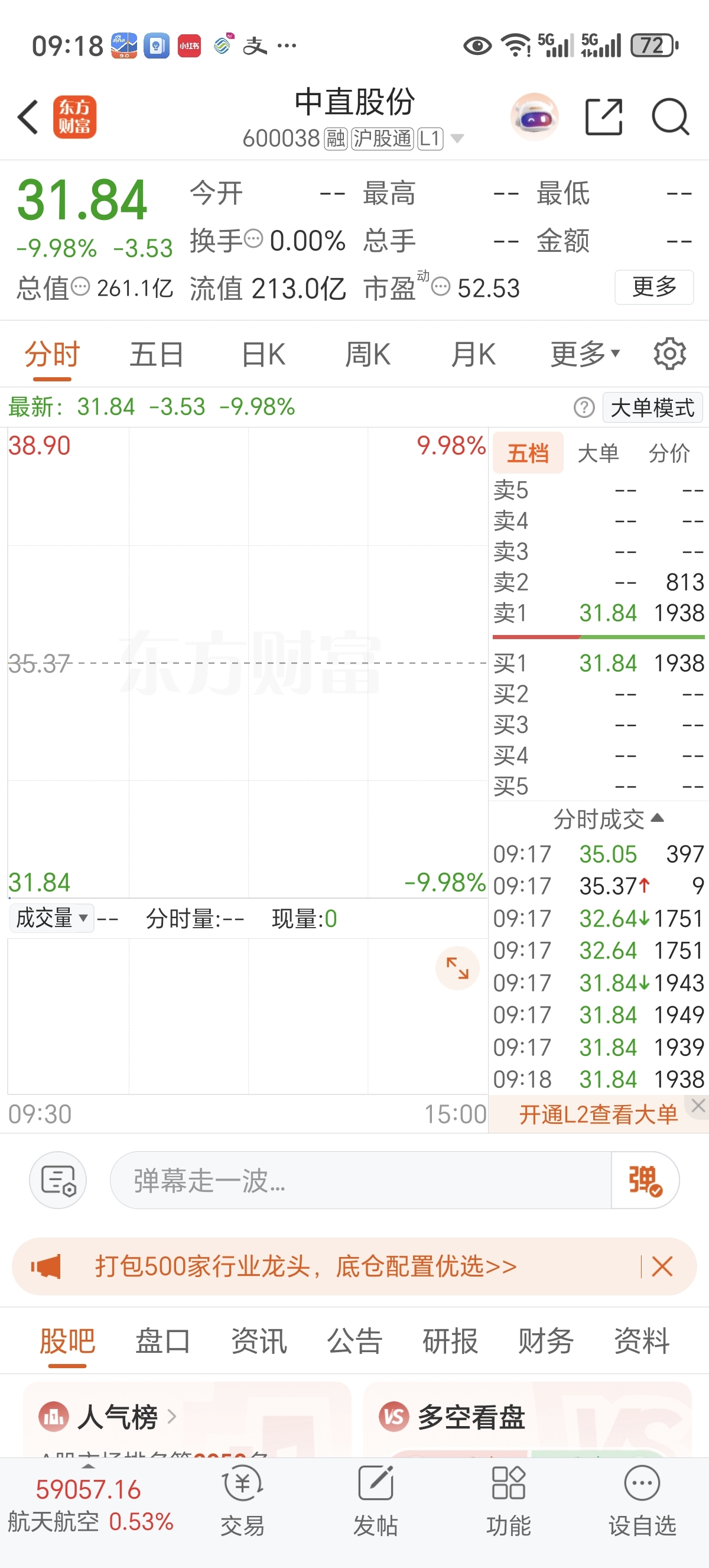 $中直股份(SH600038)$ 来了恐吓时刻了