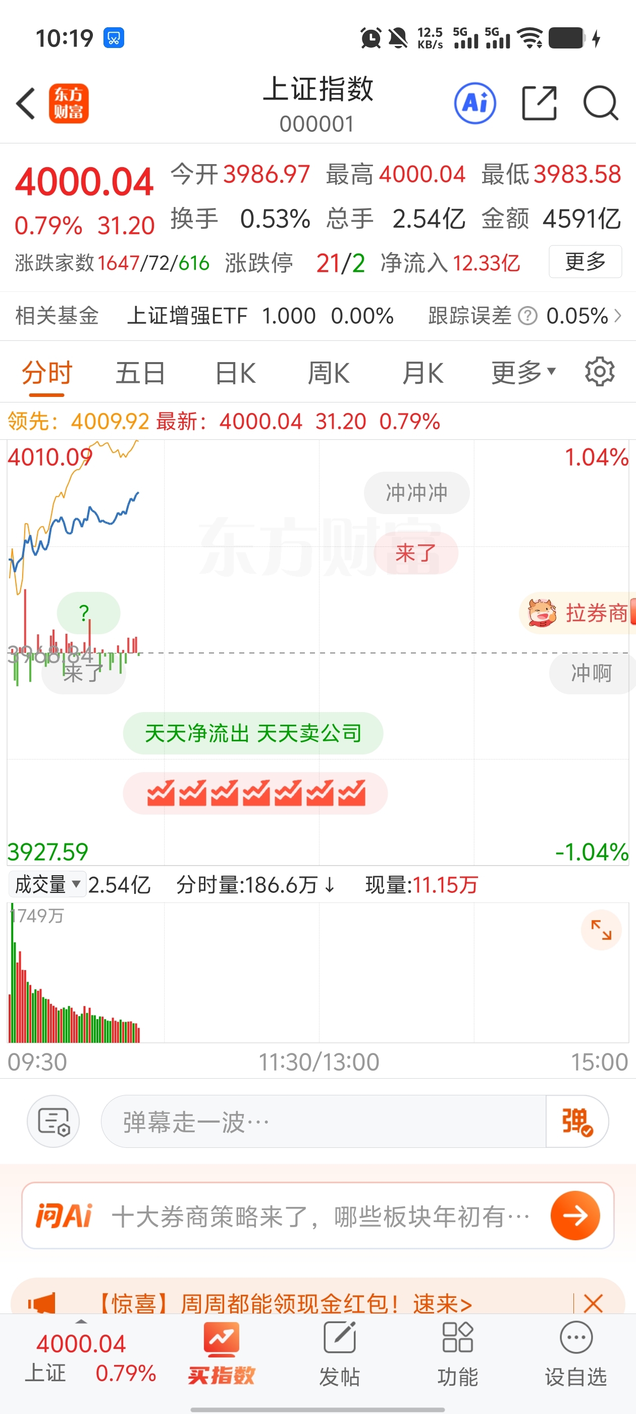 $中直股份(SH600038)$ 大盘上四千啦,记录一下