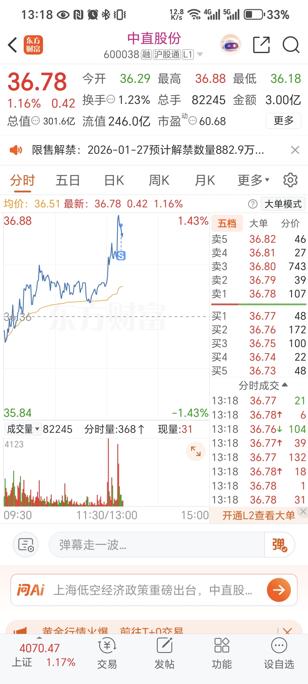 $中直股份(SH600038)$ 赶紧跑,等砸下来再买!