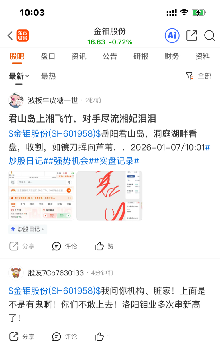 温馨提示: 1.根据《证券法》规定,禁止编造、传播虚假信息或者误导性信息,扰乱证券市场;2.用户在本社区发表的所有资料、言论等仅代表个人观点,与本网站立场无关,不对您构成任何投资建议。用户应基于自己的独立判断,自行决定证券投资并承担相应风险。《东方财富社区管理规定》
