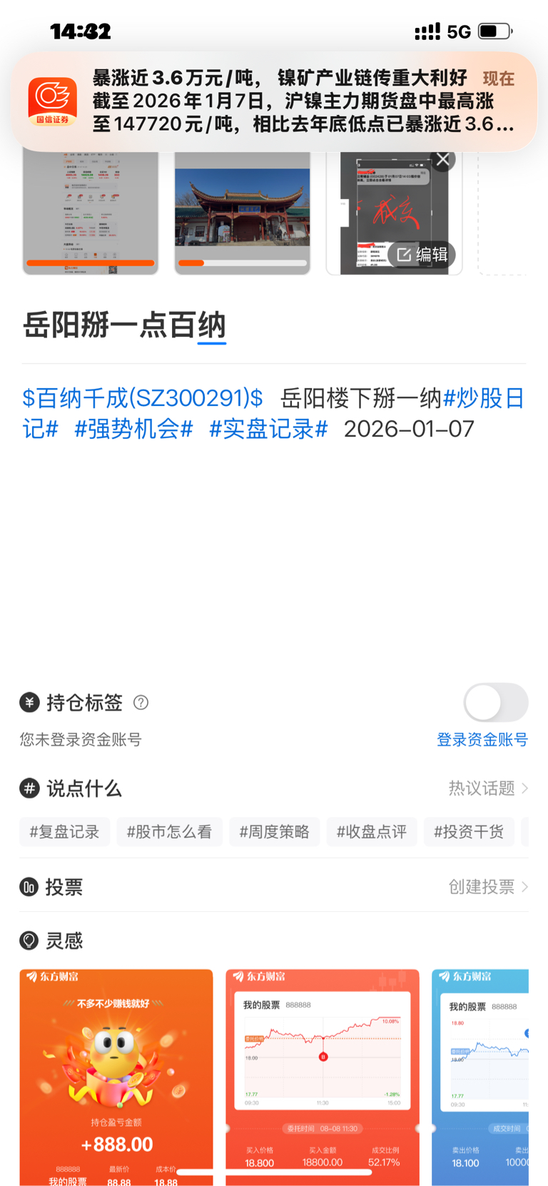 俺以为会超30000 W亿,中午1点八万亿了。今天依然超爽一天,君山回到岳阳下,学鲁子敬点兵2026-01-07-15:10#炒股日记# #强势机会# #股市怎么看#