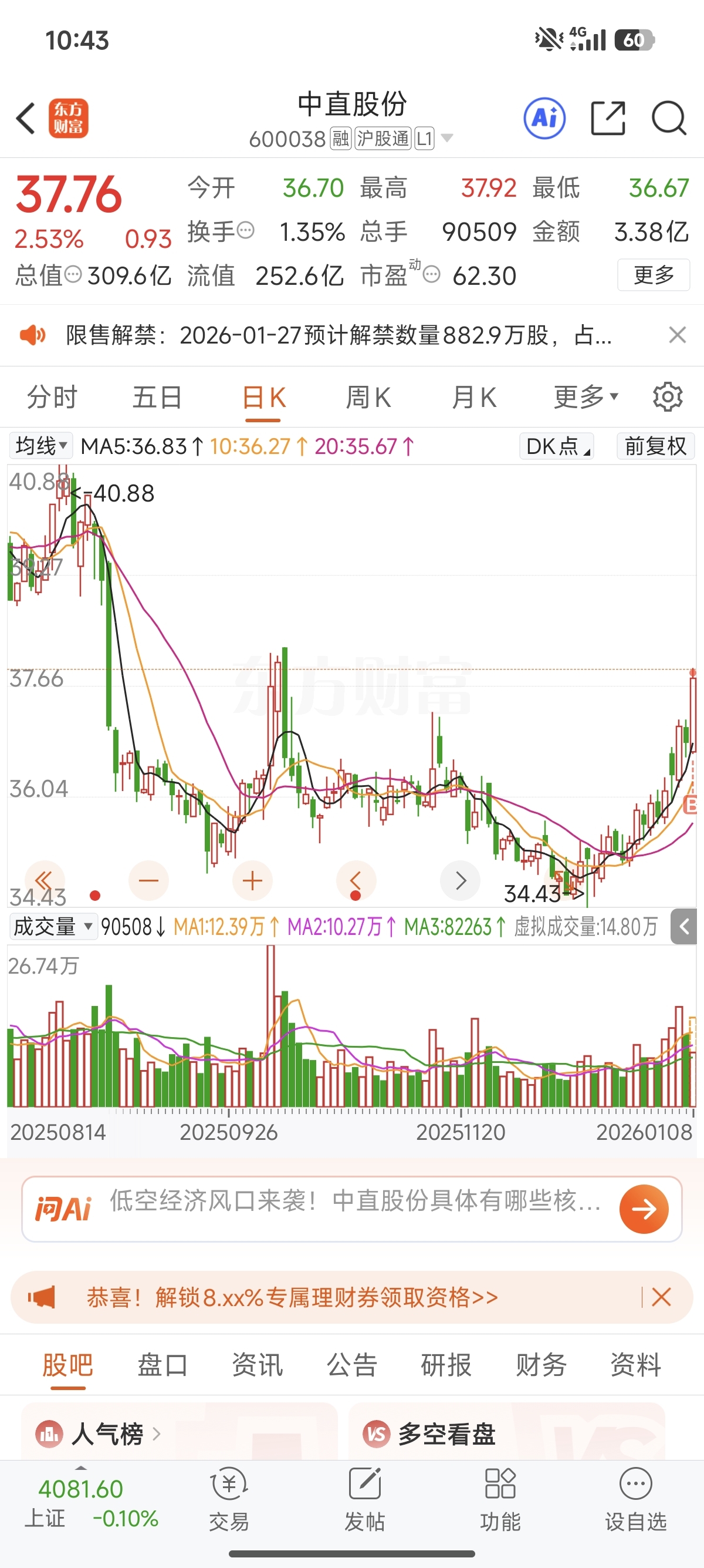$中直股份(SH600038)$ 我买啥啥跌,这次能打破我的魔咒吗?