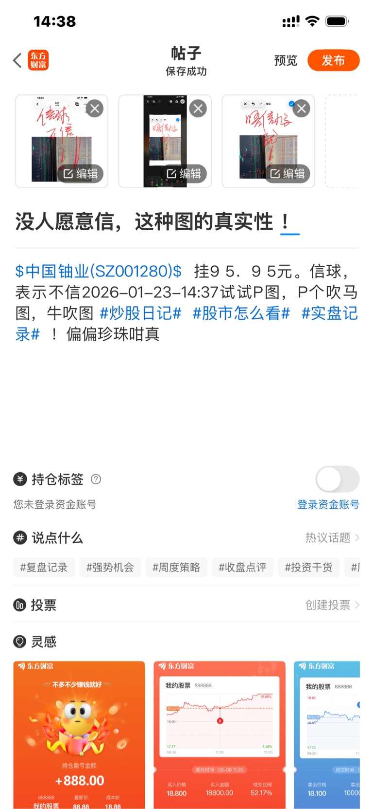 温馨提示: 1.根据《证券法》规定,禁止编造、传播虚假信息或者误导性信息,扰乱证券市场;2.用户在本社区发表的所有资料、言论等仅代表个人观点,与本网站立场无关,不对您构成任何投资建议。用户应基于自己的独立判断,自行决定证券投资并承担相应风险。《东方财富社区管理规定》