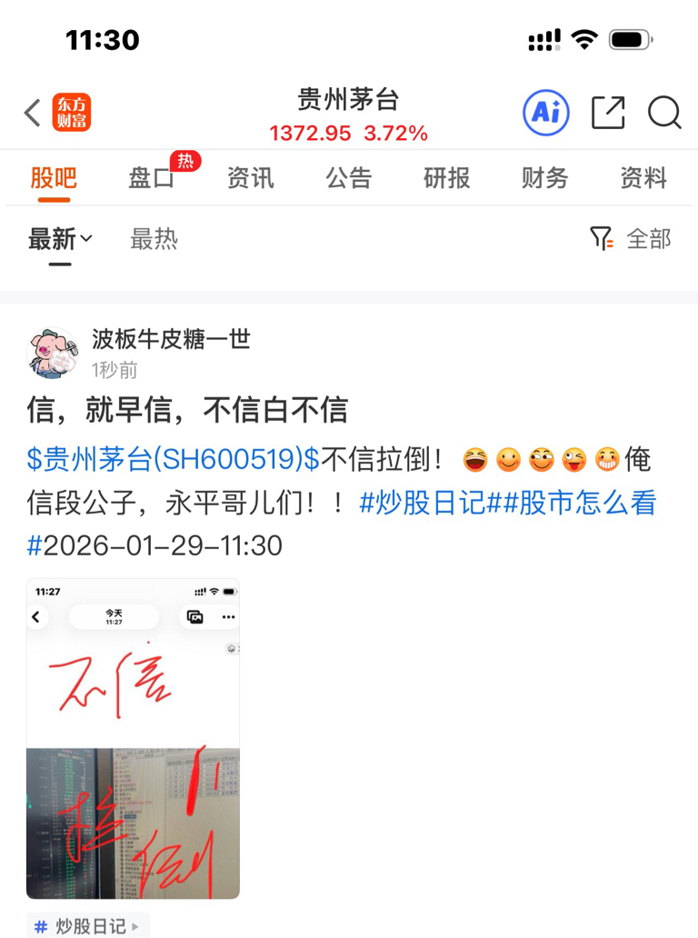 #炒股日记# #股市怎么看# #实盘记录# 2026-01-29-11:33