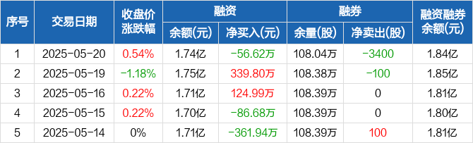 四川路桥:融资净偿还56.62万元,融资余额1.74亿元(05-20)