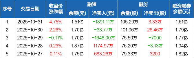 四川路桥:融资余额1.51亿元,创近一年新低(10-31)