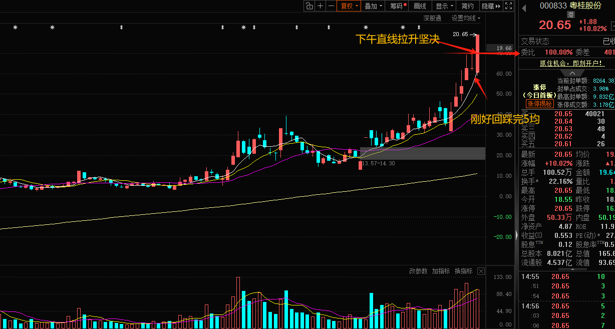 粤桂股份000833:磷化工股加上业绩增长。在今天这样的环境下,市场绿盘居多,而粤桂昨天几乎是平的,今天早上一度还是反复变绿。但是下午一开始直接一鼓作气上了板,力度还很强,牛哥的票基本都是给足了大家时间去拿货的。而且随着近期行情的变化,我们马上要迎来一次满苍的机会。届时会在那边公布的。类似于阳光电源的这种主升玩法,到时候大家自由安排苍位即可,至于粤桂明天如果冲高不板的话可以考虑撤退。近期黄磷不断新高,导致的相关标的主升。再者新型储能装机需求激增推动磷酸铁材料需求增长59.7%,支撑行业长期盈力修复预期。
