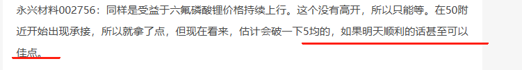 永兴材料002756:今天都到10均附近了,而且这几天一直是缩量在调的,所以按照昨天的计划直接加了,而且上午也是快速的做了修复,如果明天能站稳5均的话短期的趋势就还在的。受益于六氟磷酸锂价格持续上行。