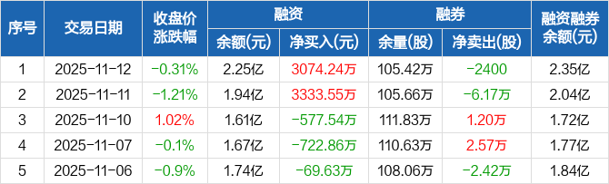 四川路桥:融资净买入3074.24万元,融资余额2.25亿元(11-12)