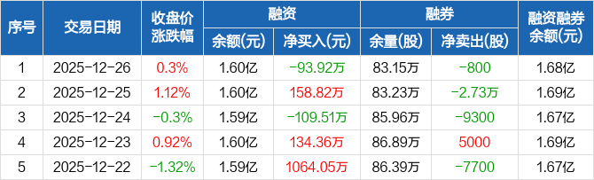 四川路桥:融资净偿还93.92万元,融资余额1.6亿元(12-26)