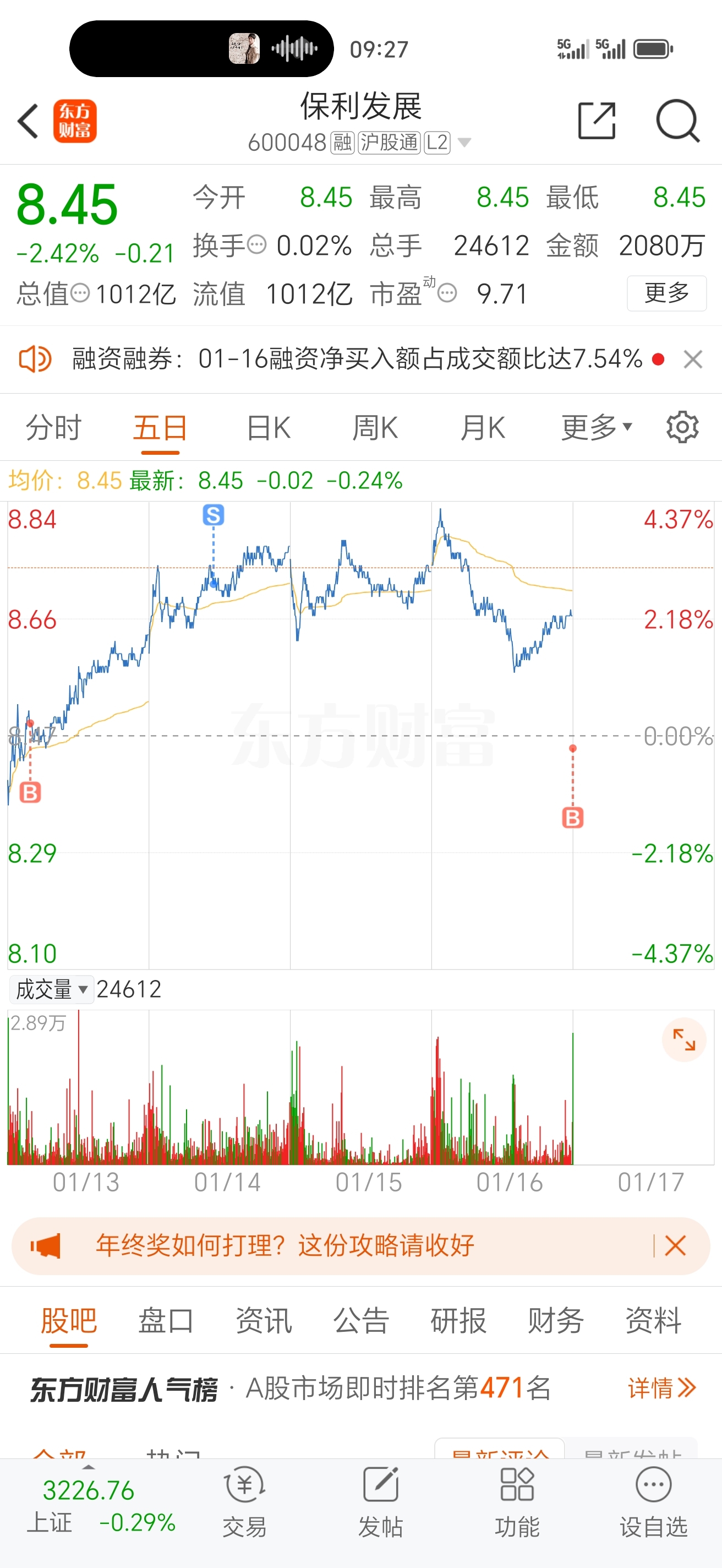 $保利发展(SH600048)$ 随便挂了个单子,这就买进了。成功入套,不知道会套到何时