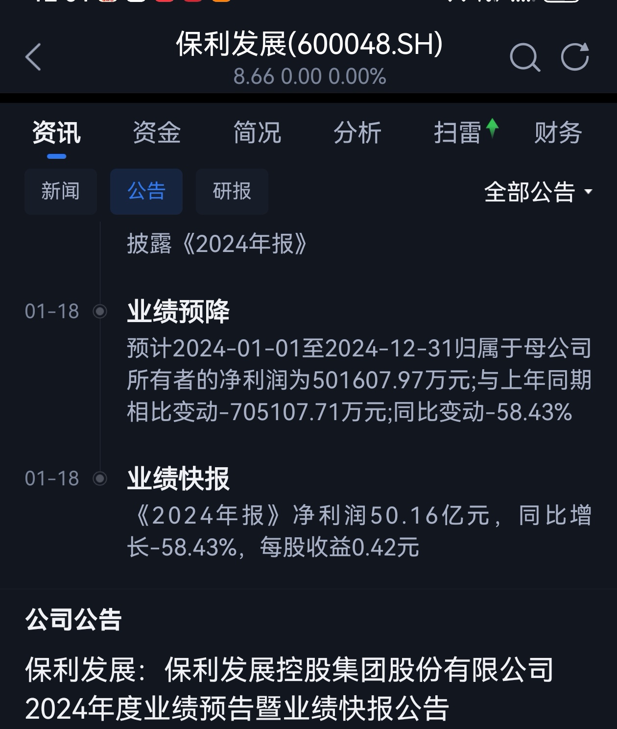 保利发展这个2024年年报业绩正式刊出时是守不住前低7.30元的。保利发展:20