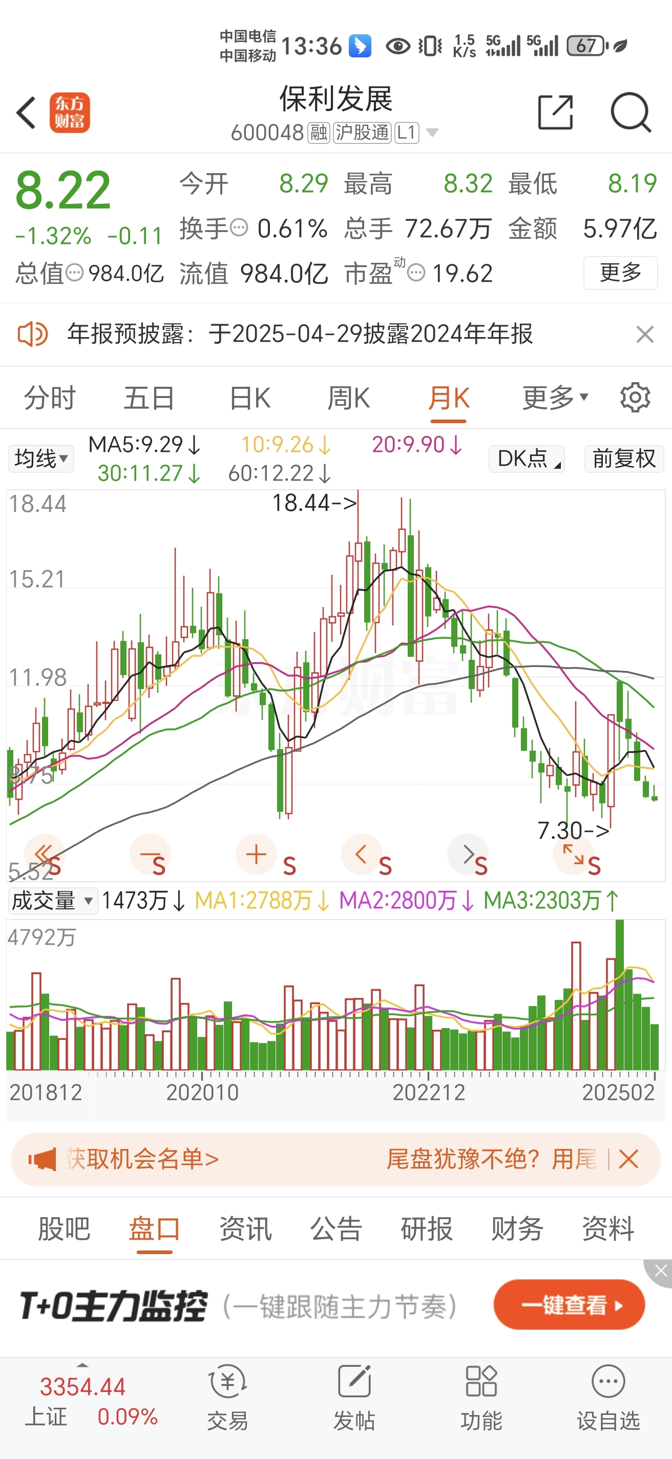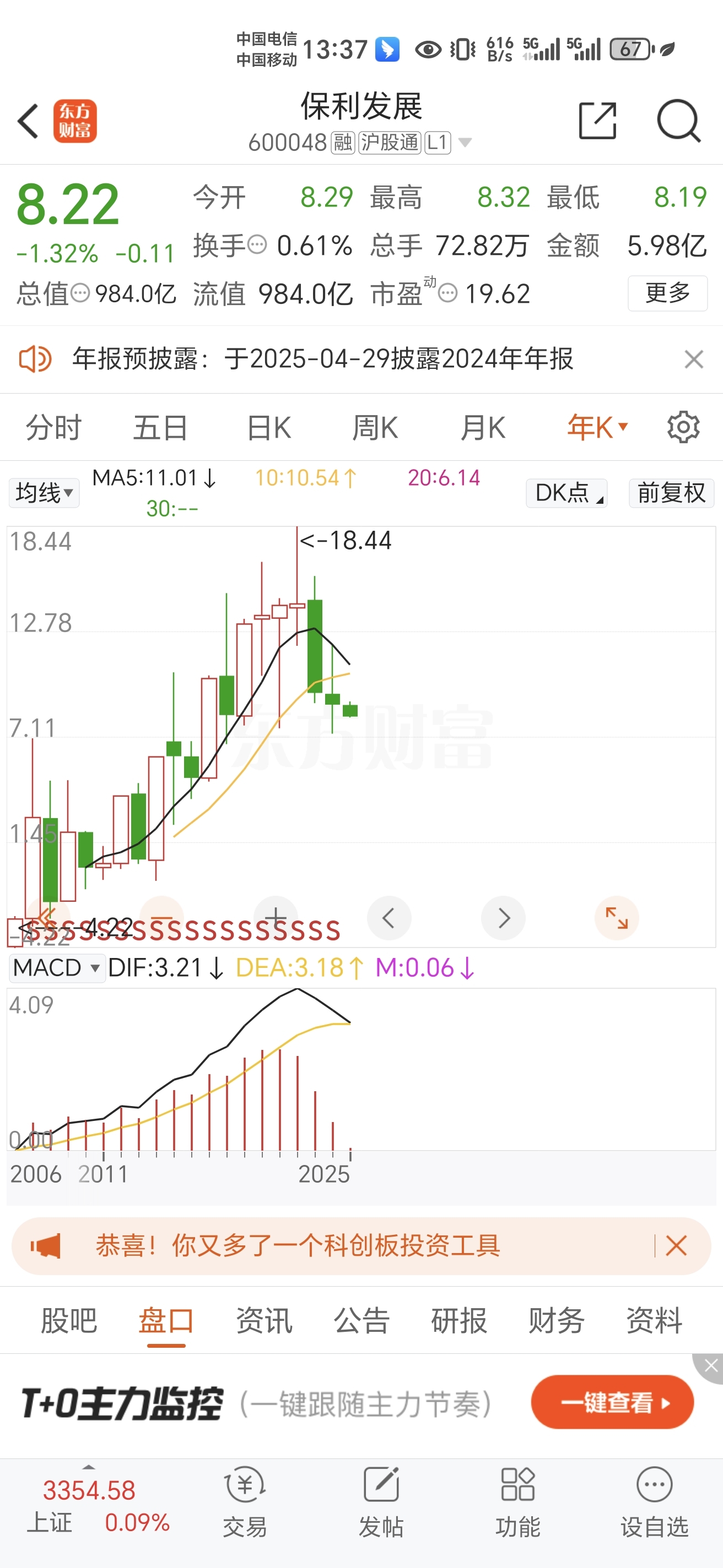 $保利发展(SH600048)$ 日线周线月线年线所有均线空头排列,有散户正好可以帮主力出货。加油散户门现在六千万,今天争取一个亿