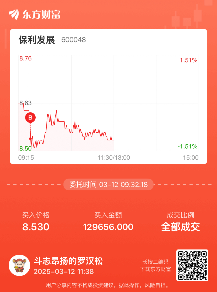 $保利发展(SH600048)$ 继续加仓 不许涨