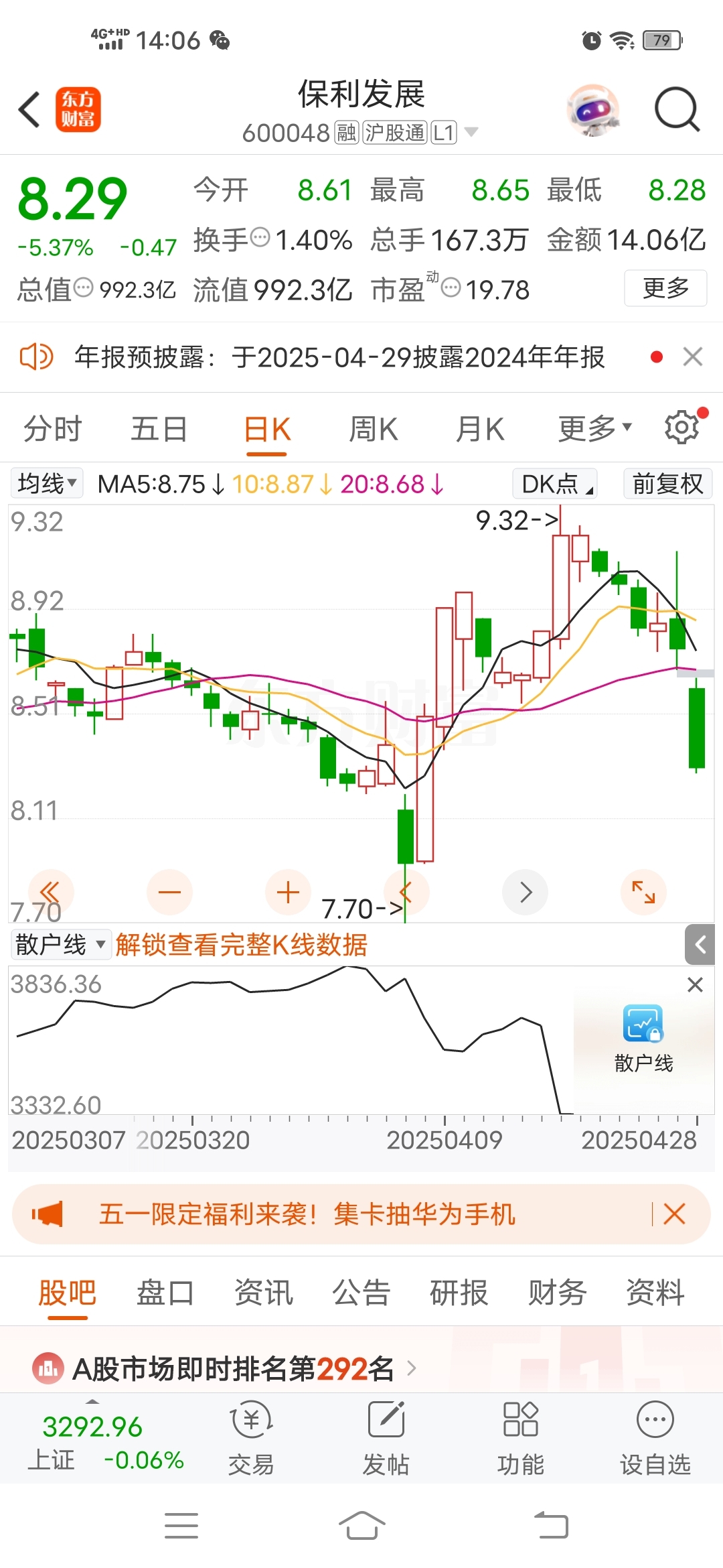 $保利发展(SH600048)$ 辛苦一个月,一天打回原形