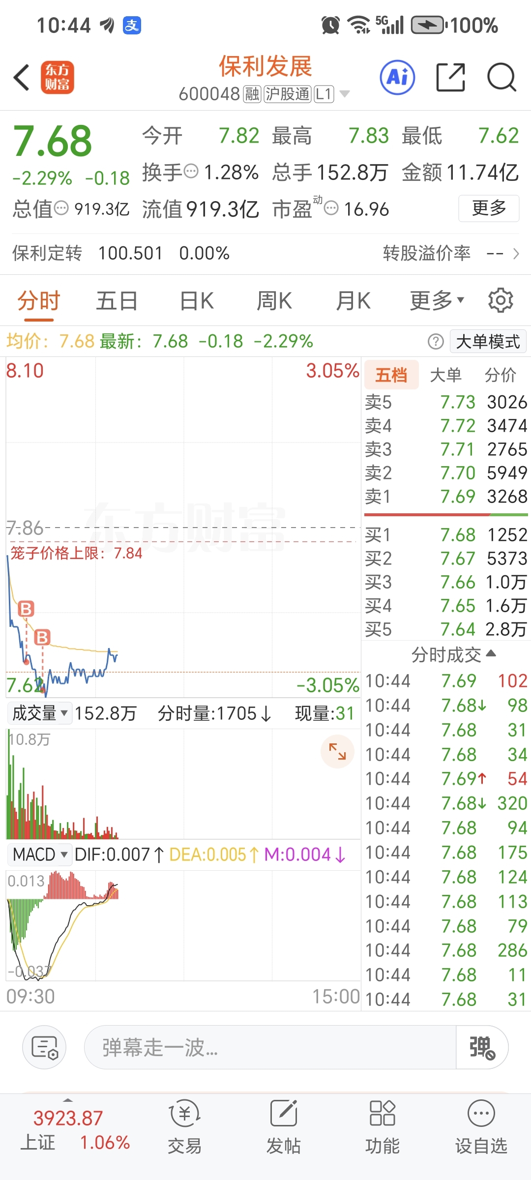 在保利挣了七八个点了,每当我要清仓跑路的时候,保利始终要大跌让我来接盘,我也是,
