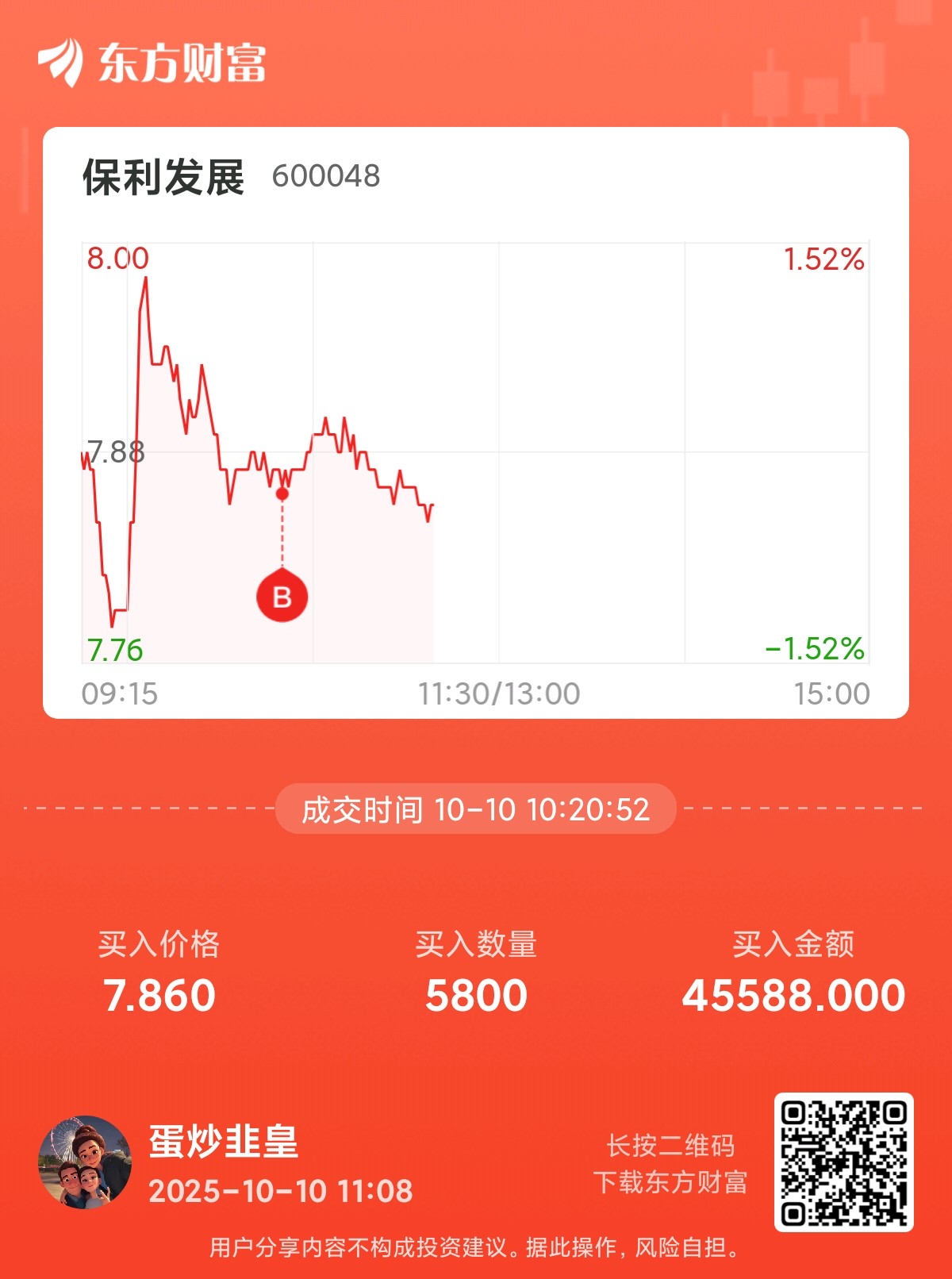 温馨提示: 1.根据《证券法》规定,禁止编造、传播虚假信息或者误导性信息,扰乱证券市场;2.用户在本社区发表的所有资料、言论等仅代表个人观点,与本网站立场无关,不对您构成任何投资建议。用户应基于自己的独立判断,自行决定证券投资并承担相应风险。《东方财富社区管理规定》