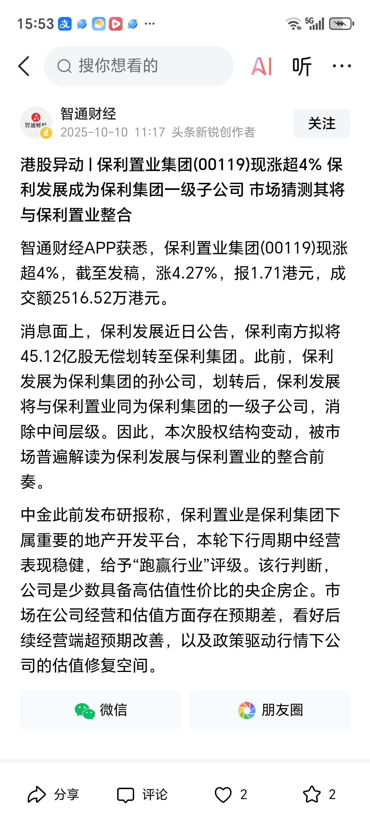 $保利发展(SH600048)$ 在利好消息刺激下,港股18.9个点的涨幅!!保利发展即将更名为保利集团!!