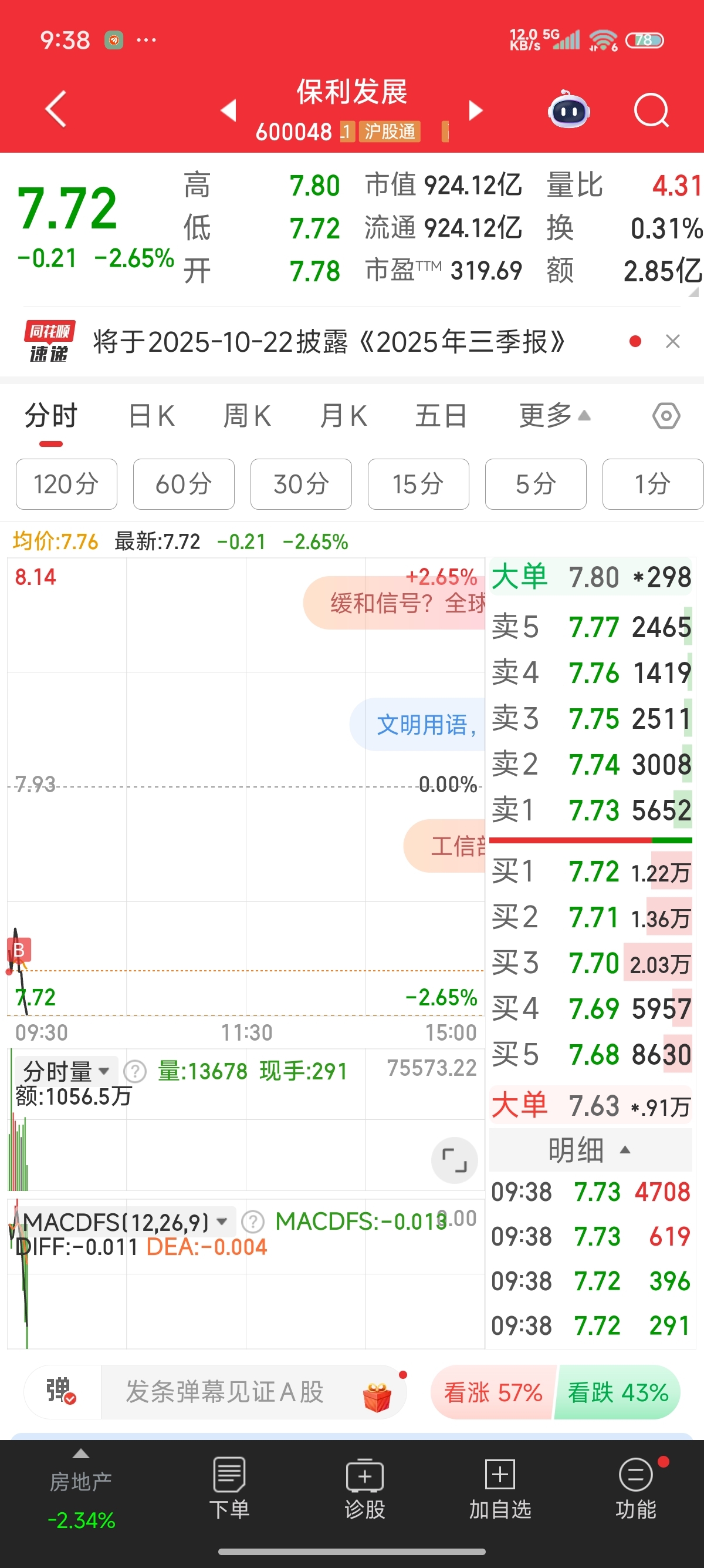 开盘新进保利发展!