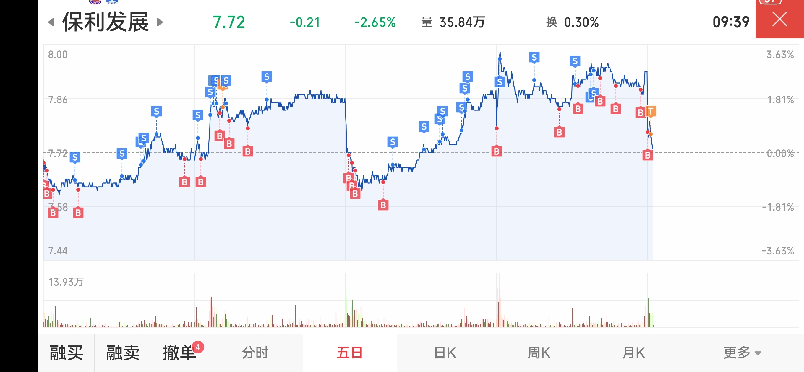 $保利发展(SH600048)$ 如果大盘持续下跌,像四月的走势,今天保利可能在急跌中见底,然后起来护盘,这老本没涨过,风险不大的,做T正当时,T他,哈哈哈哈,我成本已经7.48了,三分一仓位,爽!