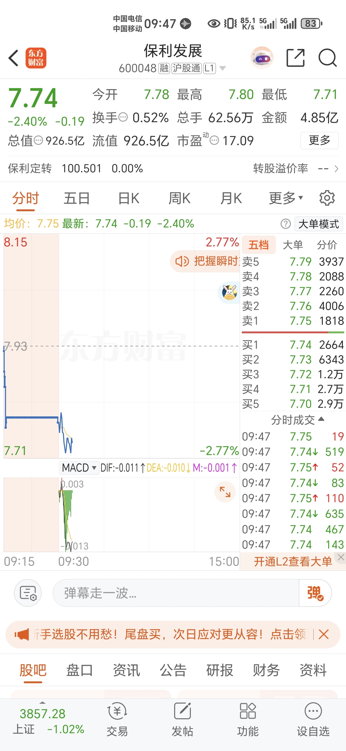 $保利发展(SH600048)$ 大盘板块已经起飞,保利发展速度跳水,今天三倍做空起飞。
